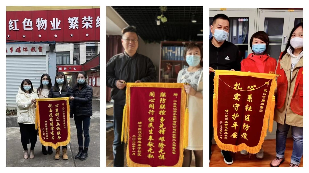 ? ? ? ?碧水集團(tuán)積極配合社區(qū)開展疫情防控工作,充分發(fā)揮了黨組織的戰(zhàn)斗堡壘和黨員的先鋒模范作用,認(rèn)真落實(shí)了在職黨員“雙報到”參加基層防控工作的精神。硚口區(qū)漢正街道永茂社區(qū)、永寧社區(qū)、萬安社區(qū)為碧水集團(tuán)及下屬公司贈送錦旗表示感謝。萬安社區(qū)工作人員說:“感謝你們與我們站在一起、干在一處?!蹦壳埃趟救吭诼汓h員均已下沉社區(qū)報到,用“先鋒紅”守護(hù)人民群眾的“健康綠”。