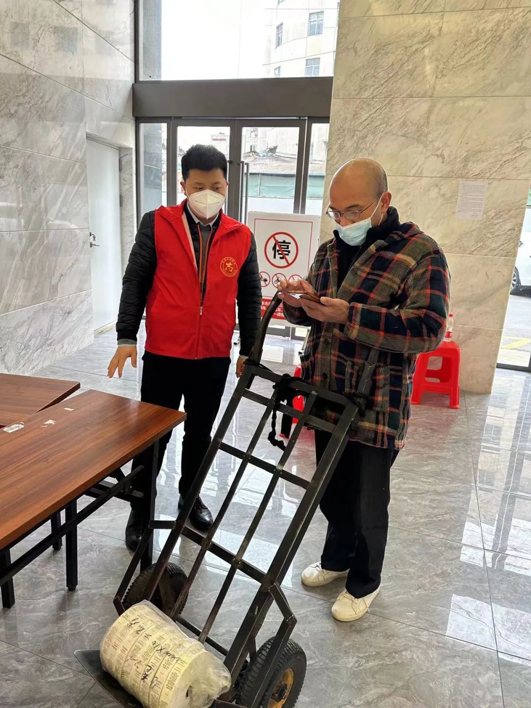 ? ? ? ?“您家需不需幫忙?。课覀儊韼湍沿浹b車!”30日上午,武碧綜發(fā)公司黨員在漢正街道藥王社區(qū)和永茂社區(qū)值守,粟君、王夢瓊、田志敏三位黨員同志看到運(yùn)貨的人都會問上一句,搭把手。??