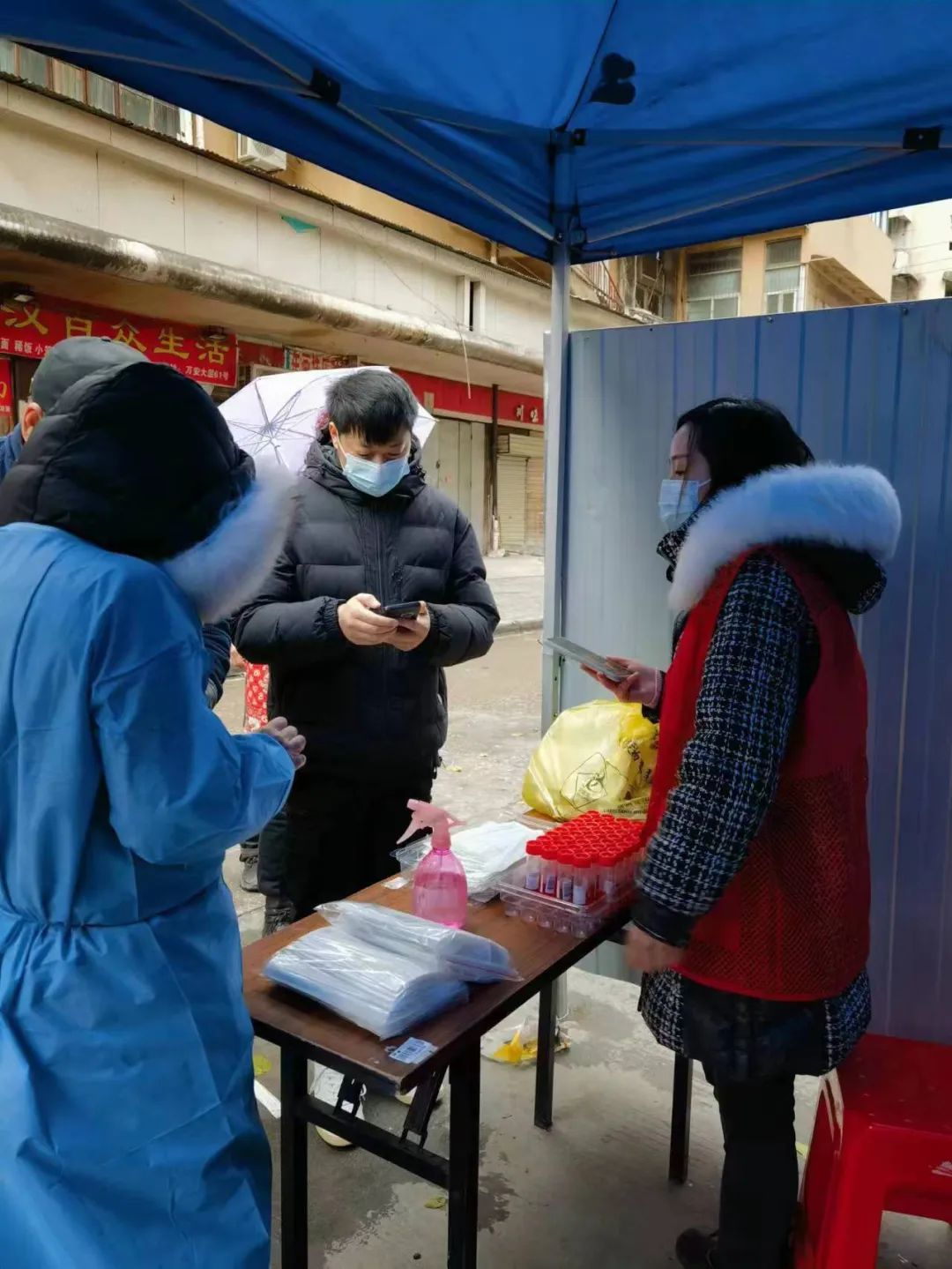 ? ? ? ?“請在這里掃碼,注意排隊保持安全距離。”11月30日,在漢正街道萬安社區(qū)核酸采樣點(diǎn),碧投公司志愿者不斷向前來咨詢的居民介紹注意事項、引導(dǎo)排隊秩序、進(jìn)行掃碼登記。? ? ?