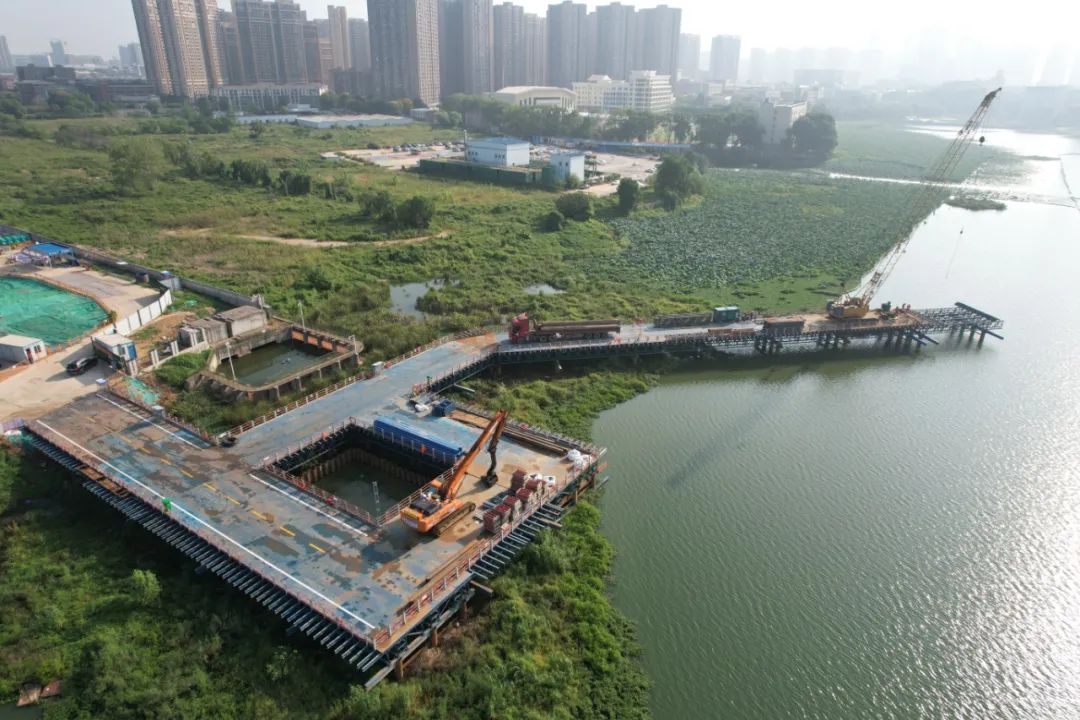 ? ? ? ?自2023年6月底開工以來,陸地明挖段、高壓旋噴樁、鋼板樁支護(hù)、排氣井、沉井、水上鋼棧橋平臺等全面開工。項目由橋梁公司、千湖海綿(奧鑫)公司負(fù)責(zé)施工,施工周期一年,總投資約2億元。